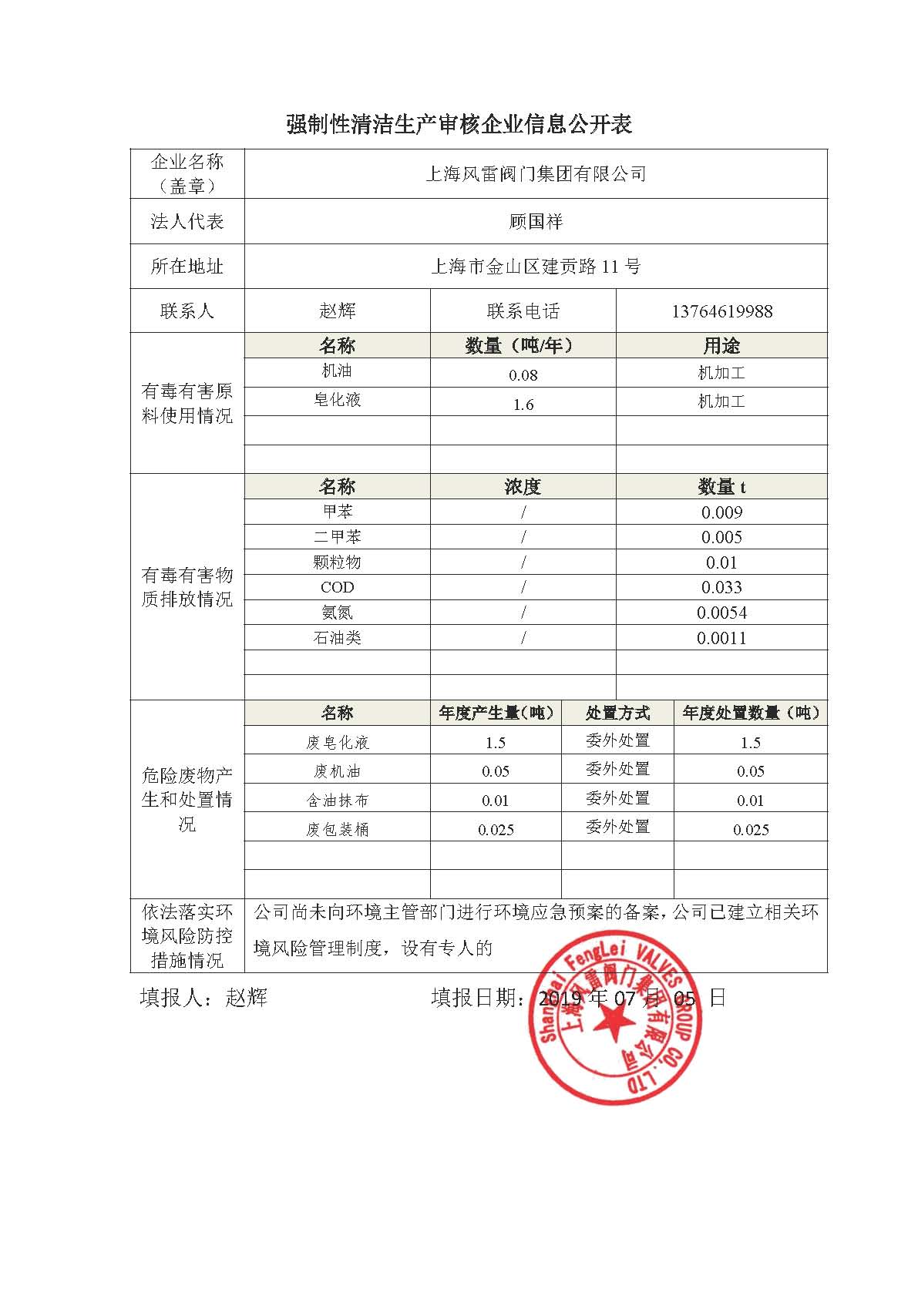 强制性清洁生产审核企业信息公开表